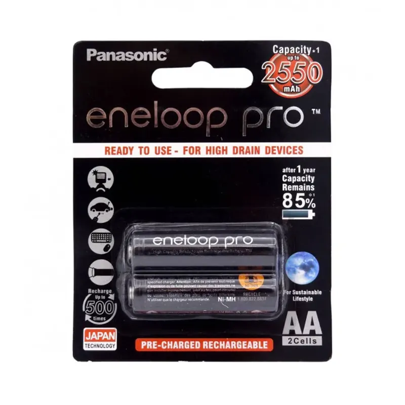 باتری قلمی قابل شارژ AA پاناسونیک (Panasonic) مدل eneloop pro با ظرفیت 2550 میلی آمپر ساعت